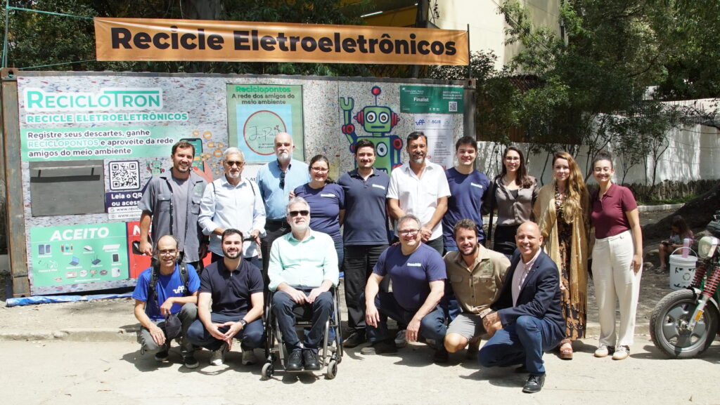 A Reciclotron criou uma rede colaborativa gamificada para alavancar a economia circular. Usuários ganham Reciclopontos para resíduos eletroeletrônicos descartados nos coletores e usam a moeda digital para adquirir ofertas na rede de parceiros. As telas de LED mostram o funcionamento, anúncios e mensagens de educação ambiental. Além disso, o sistema gera dados úteis para mapas de resíduos, ciclo de vida dos produtos e perfil de consumo. O engajamento do consumidor é estimulado com competições, exposições de arte de sucata, e ações positivas como doação de equipamentos para inclusão digital. Reconhecido pelo prêmio Green Gown Awards International com chancela da ONU, o modelo da Reciclotron movimenta o mercado de reciclagem e o consumo consciente, levando novos clientes para os estabelecimentos parceiros, aquecendo a economia eco friendly e criando oportunidade de novos empregos e negócios da economia circular.